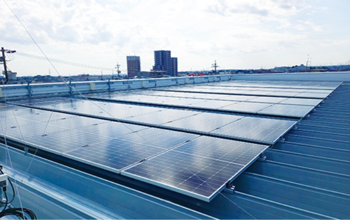 店舗の屋上に設置した太陽光パネル