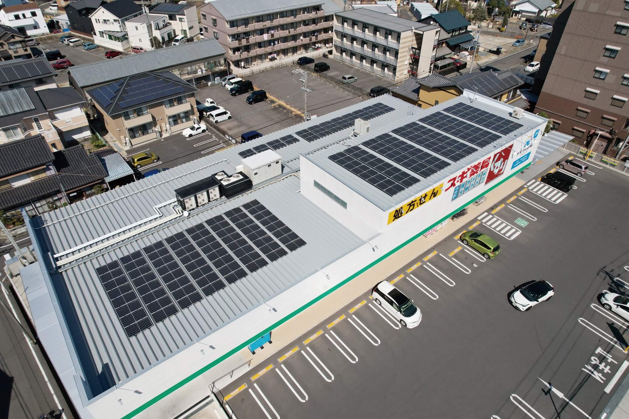 愛知県刈谷市富士見店の屋上に設置した太陽光パネル