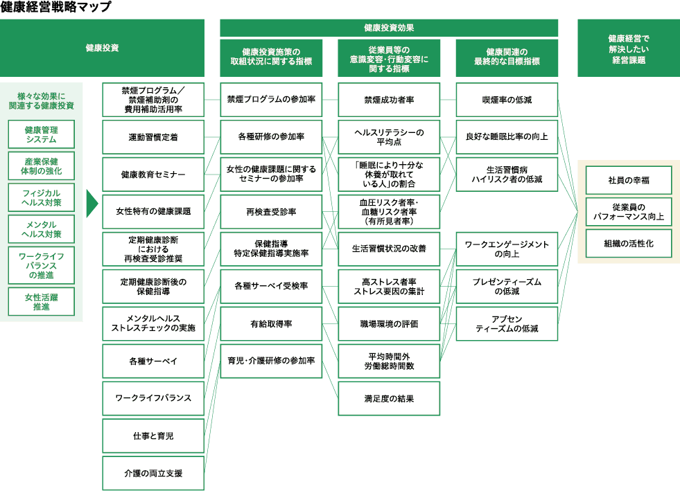 健康経営をさらに推進するために、社長を健康経営最高責任者とし、各子会社社長を推進の執行責任者とすることで、より機動的かつ柔軟に対応していくことができる体制としています。